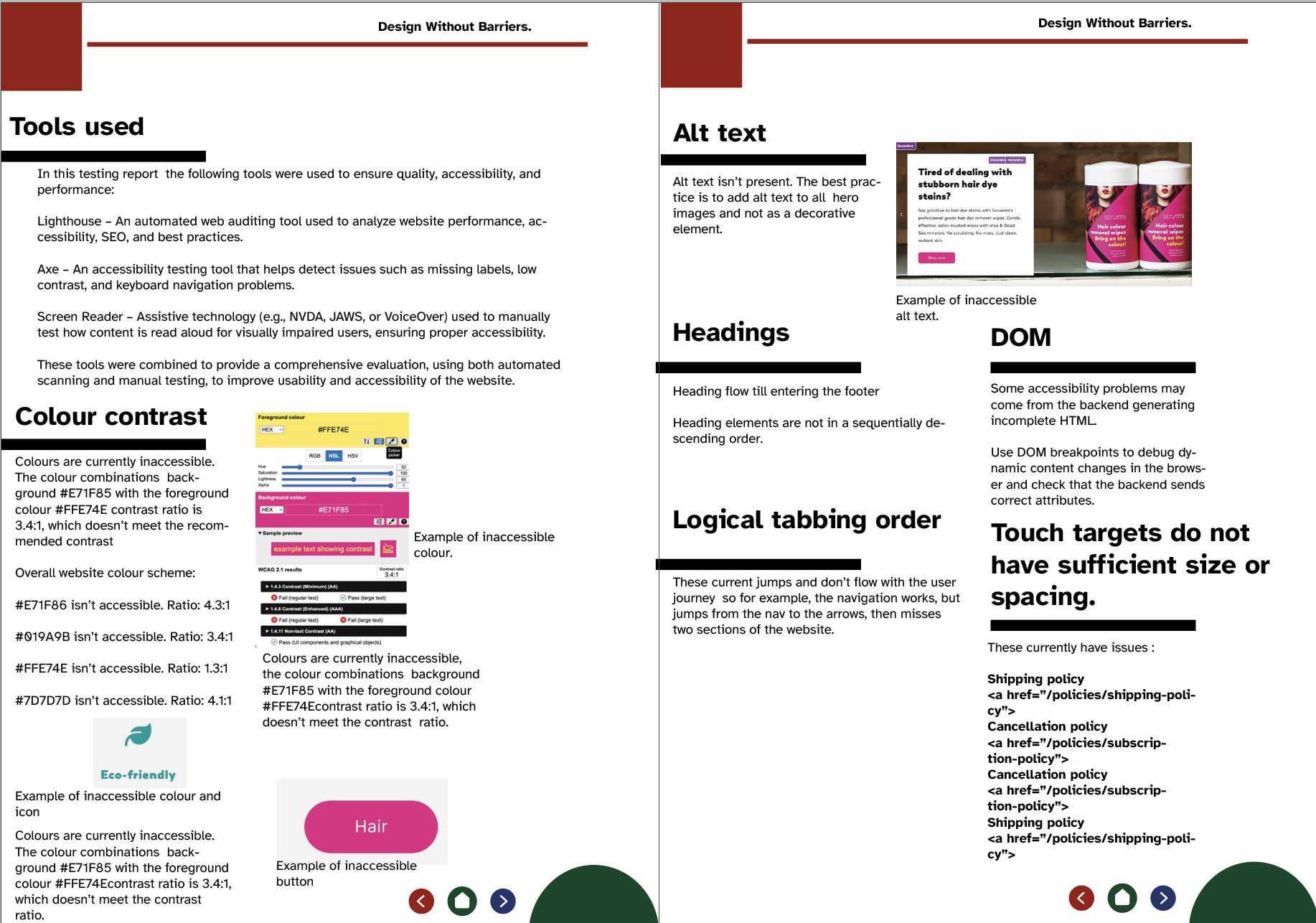 ✔ Screenshots highlighting accessibility barriers